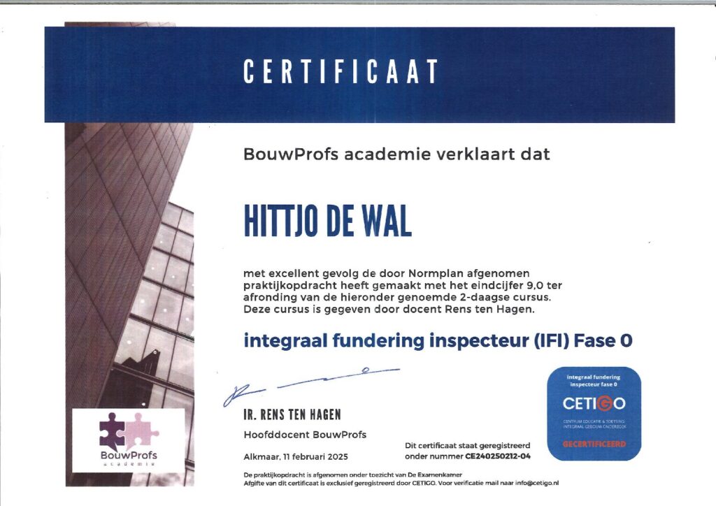 BENG expert bestaande bouwintegraal woning inspecteur (IWI)Meerjaren Onderhoudsplanner (MJOP)integraal fundering inspecteur Fase 0