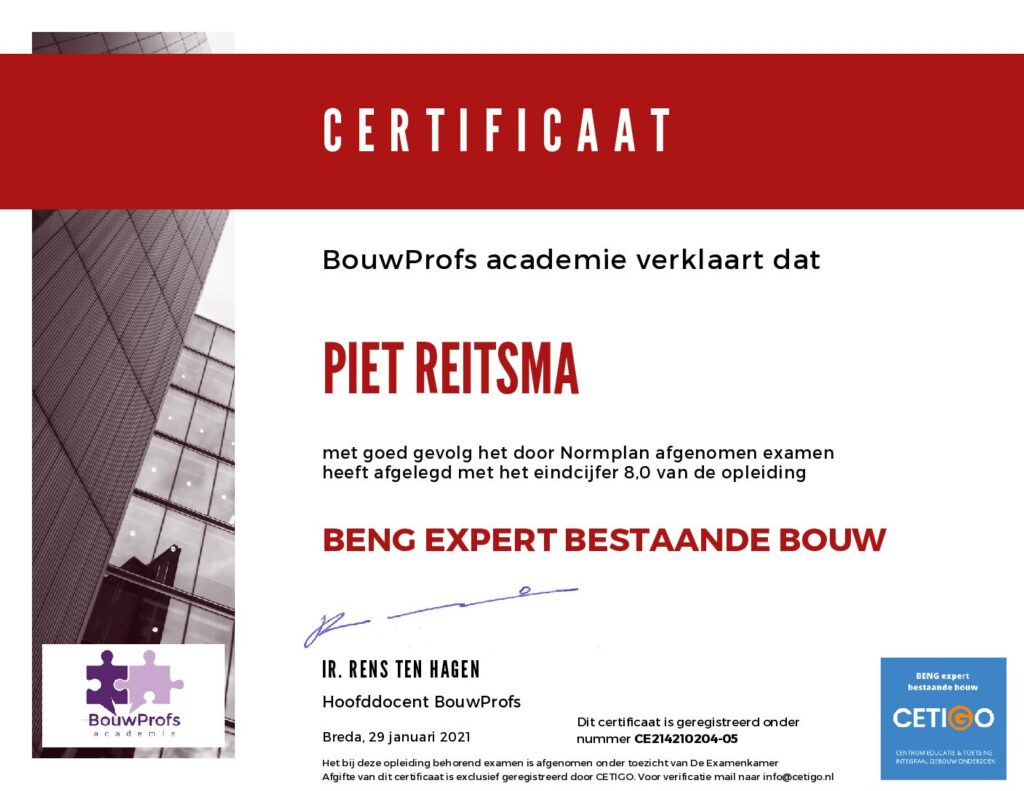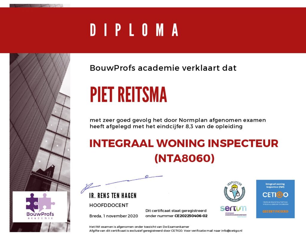 Sinds 2020 gediplomeerd woninginspecteur en BENG adviseur bestaande bebouwing.